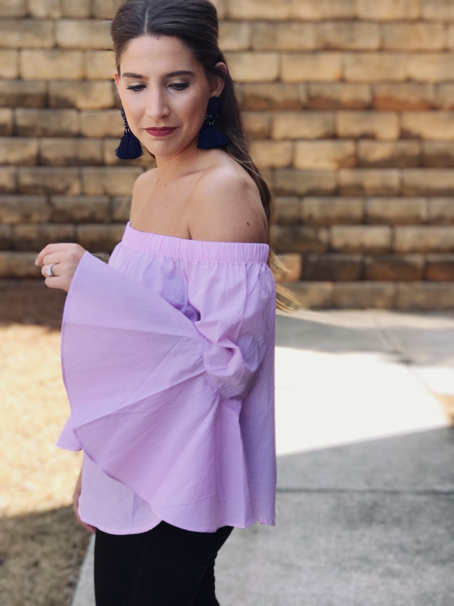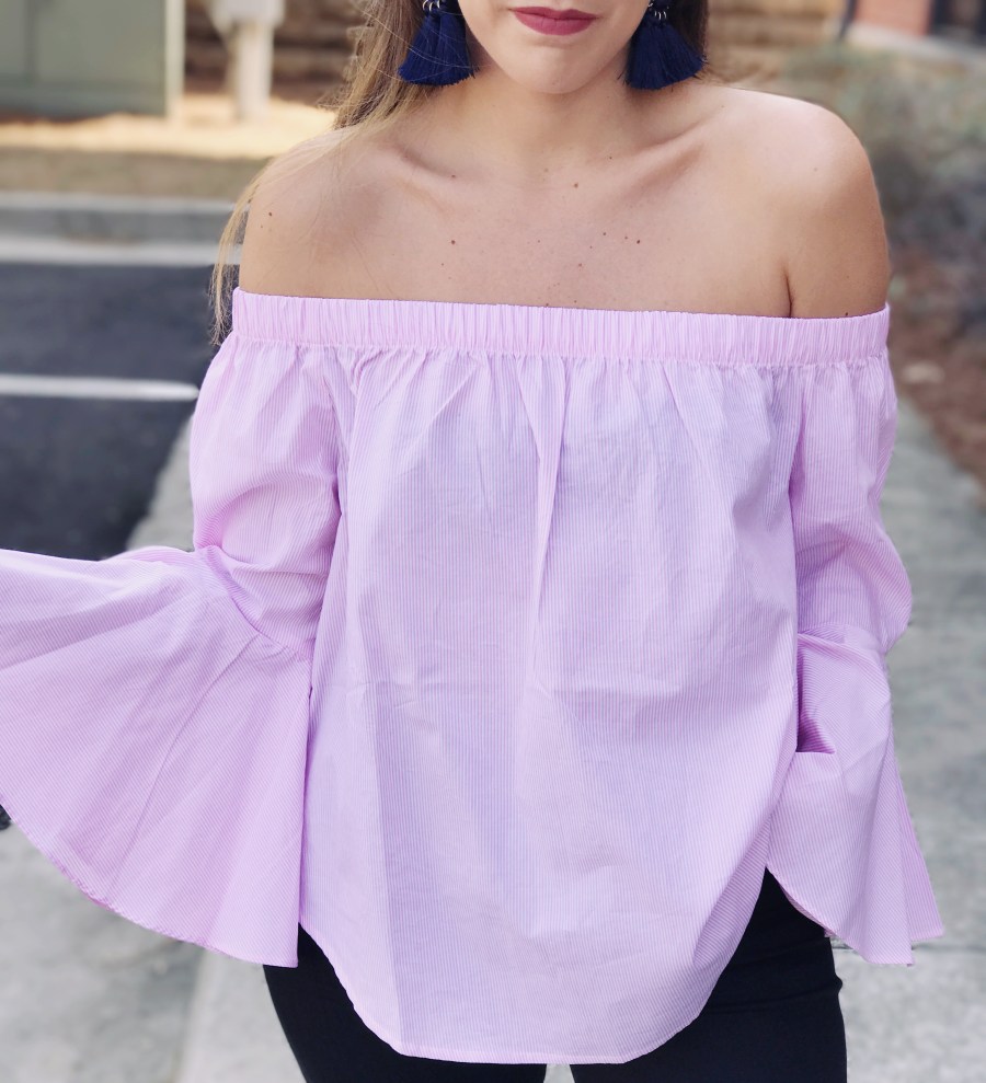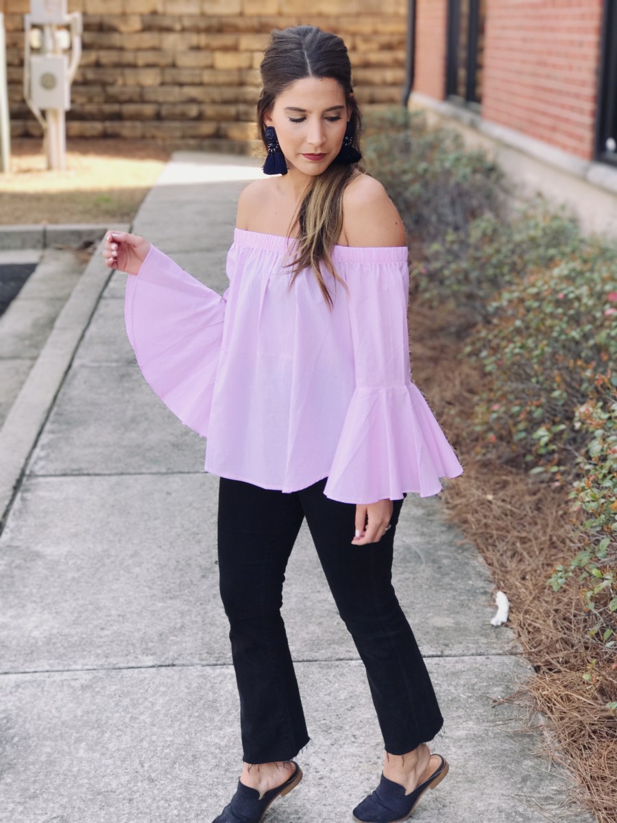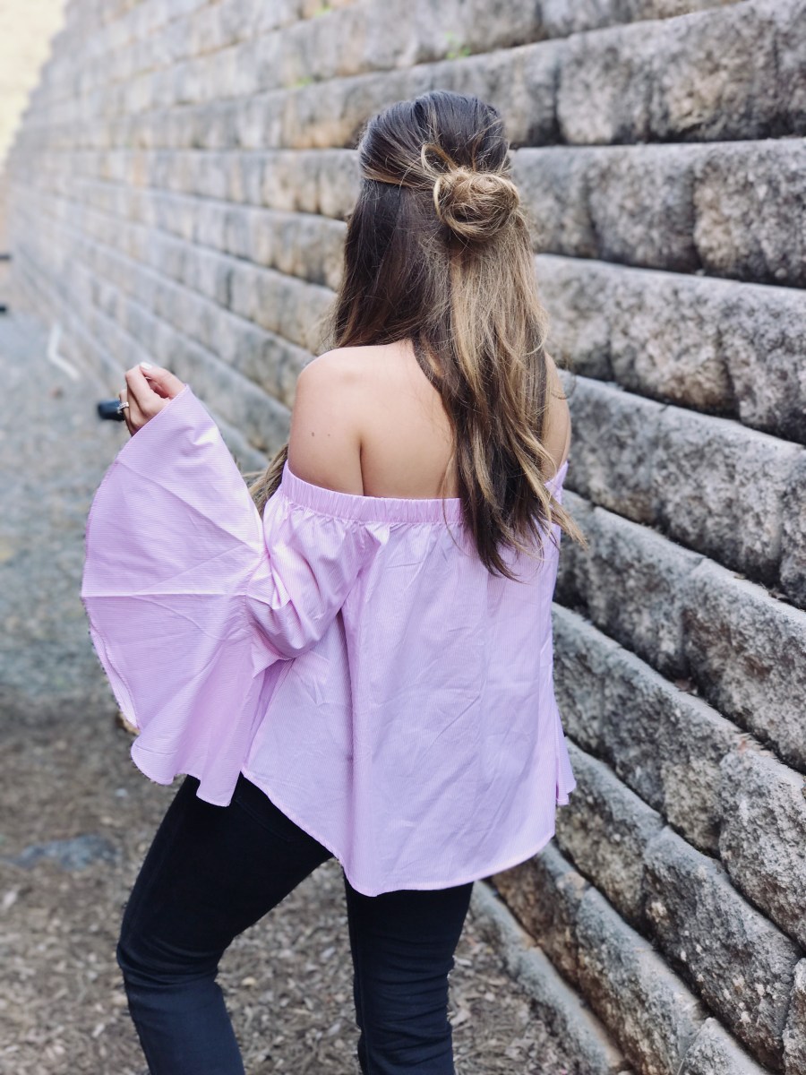 Lately I have had a LOVEEE for bell sleeves! So the other day I found this shirt at forever21 that was not just off the shoulder but had the perfect type of sleeve ! I’m usually not a pink person but the pink seemed so light, it was very neutral. This top also comes in a light blue color for those who prefer another color. Oh, and I almost forgot to mention the perfect earrings to compliment this outfit! So I got the earrings from H&M but I can’t find them online but I did find a similar pair from Sugarfix, which can be purchased at target now!! Below are some pictures of the top and earrings with the links attached to them! Keep posted for more fun outfits for this spring &Don’t forget to click on the links below to purchase these items
