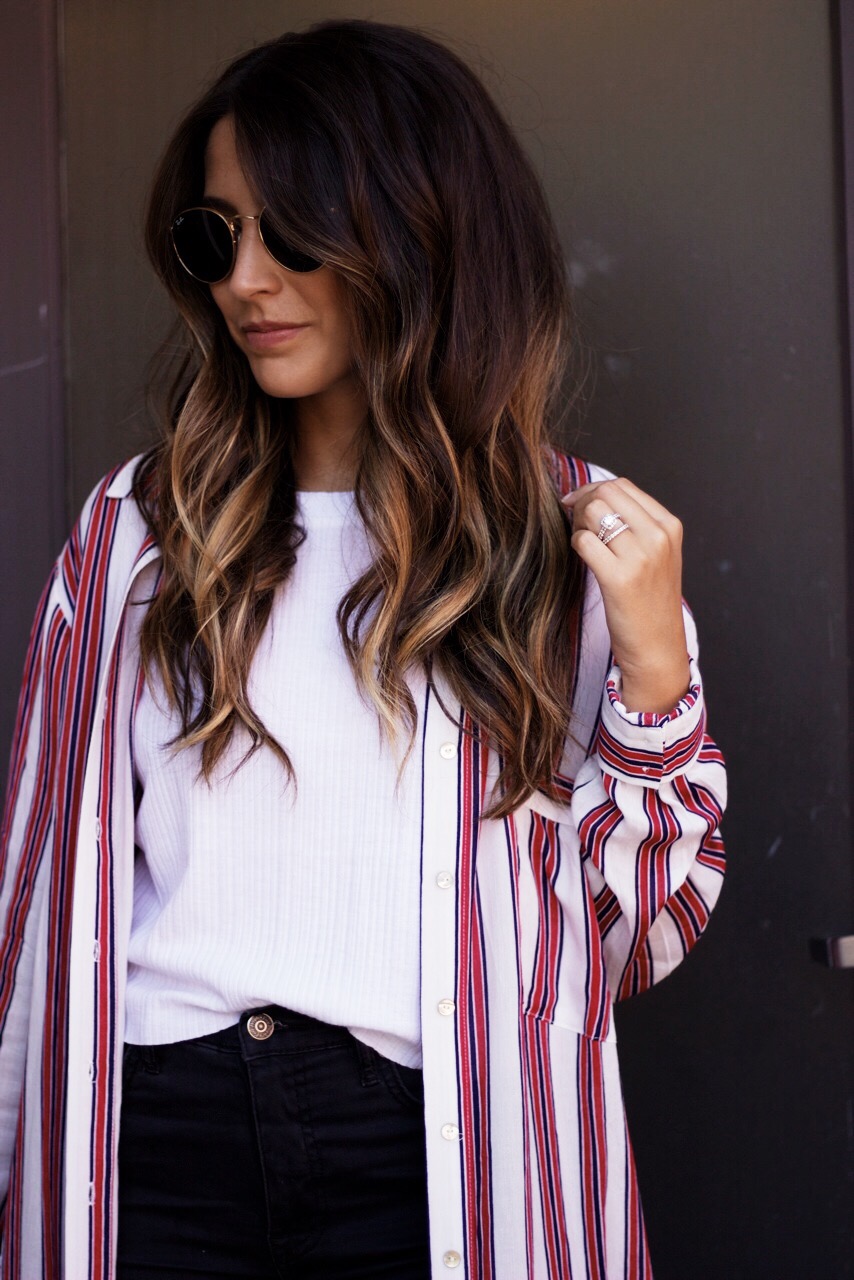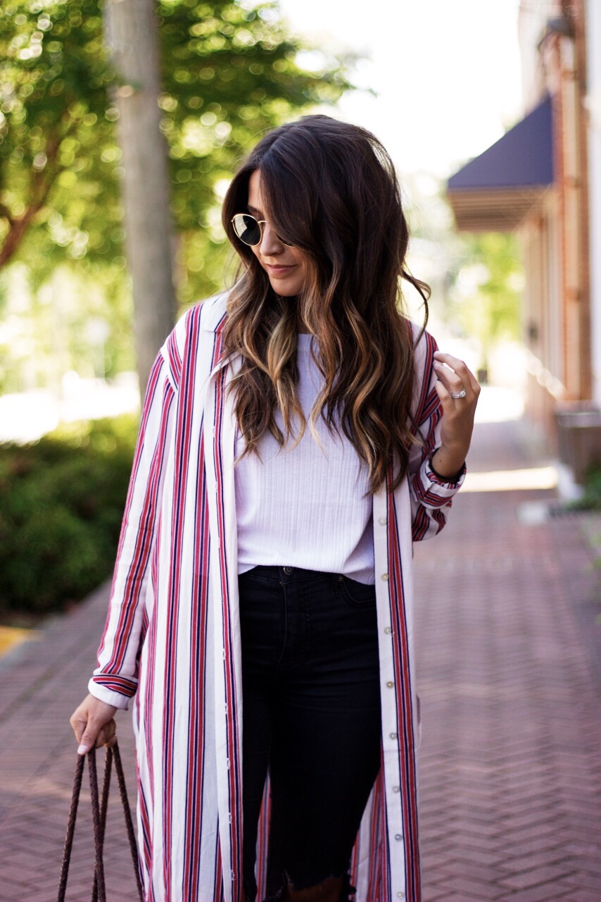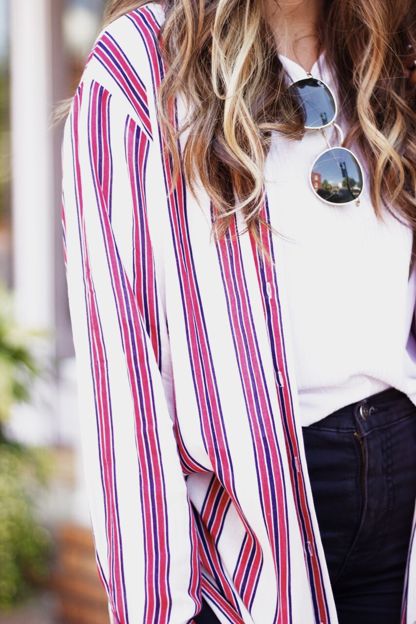 Fourth of July is around the corner and what a better way to celebrate then to start shopping for your FOURTH OF JULY OUTFIT! If your either going out or have a casual night planned, this outfit can be worn for any occasion. Love the button down shirt dress because it can be worn both ways, as a dress or a cardigan over a cute top. I decided to pair this button down with a white crop and some high rise skinnies. Made it more casual but you can add a few more accessories and dress it up.