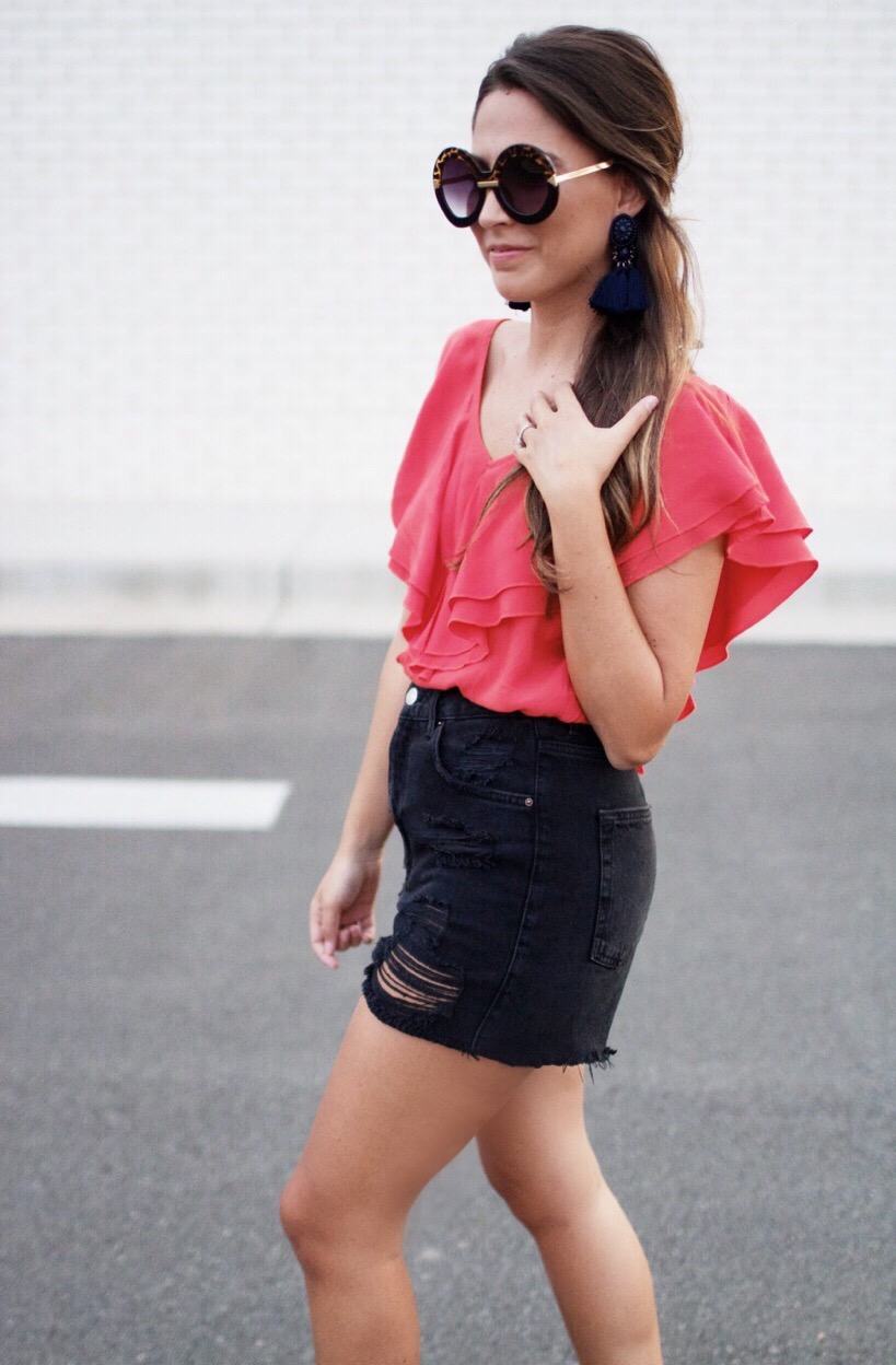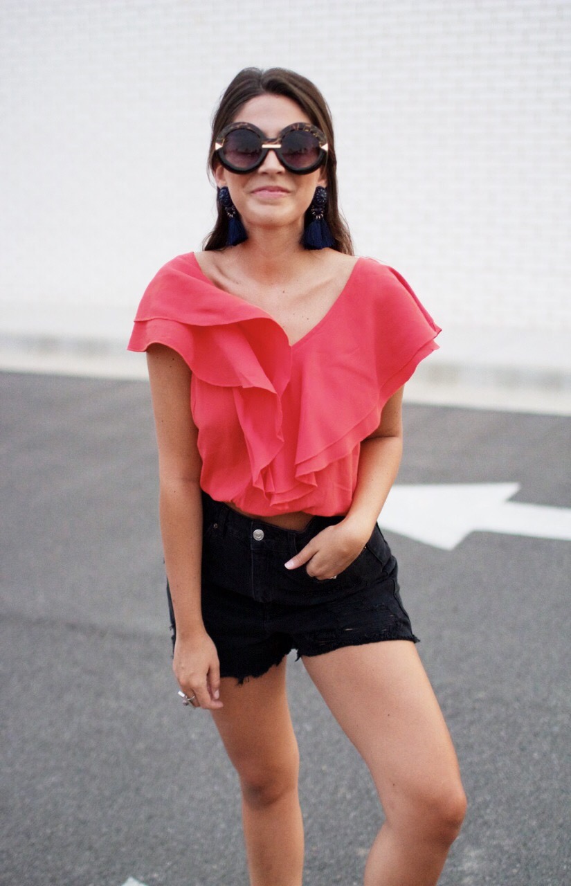 The Flounce- Layer Crop has to be the most flattering top anyone can purchase! Not only is this top super cute, but its also one of my favorite affordable tops! Take a look for yourself, and check the link below to purchase the Flounce- Layer Top!