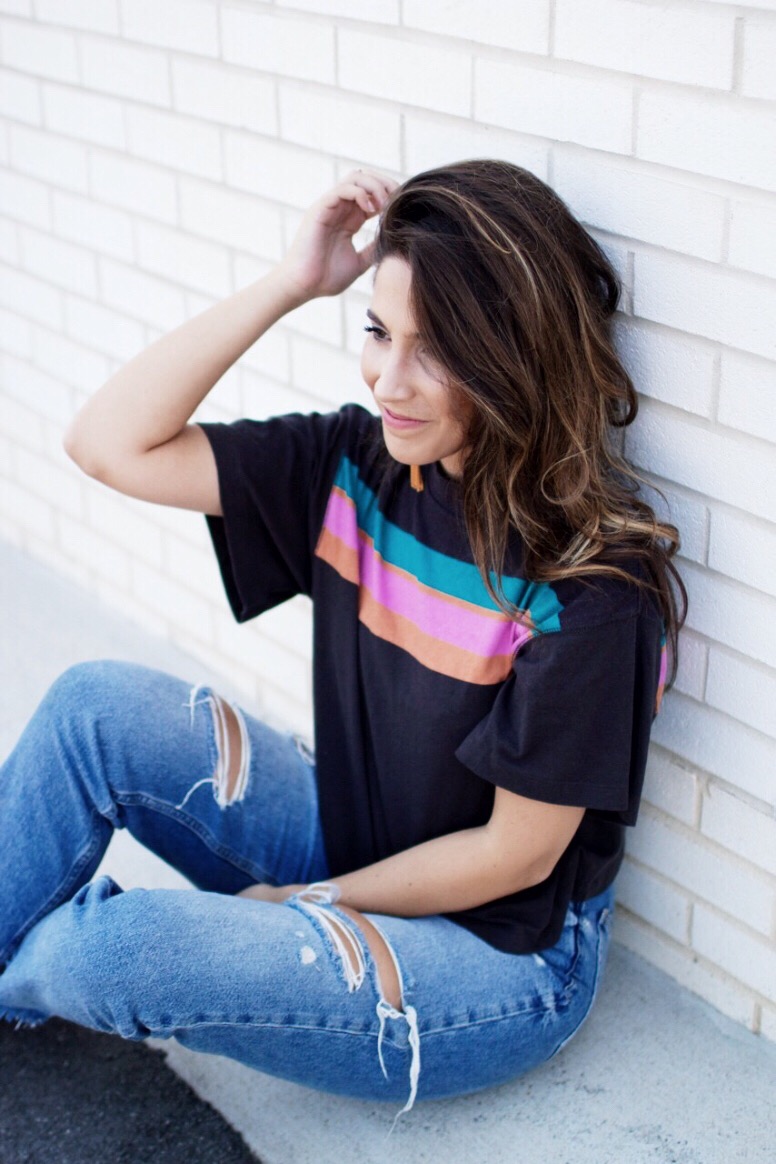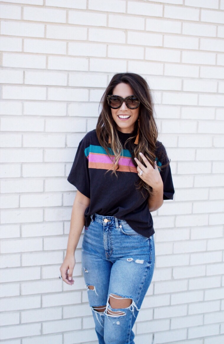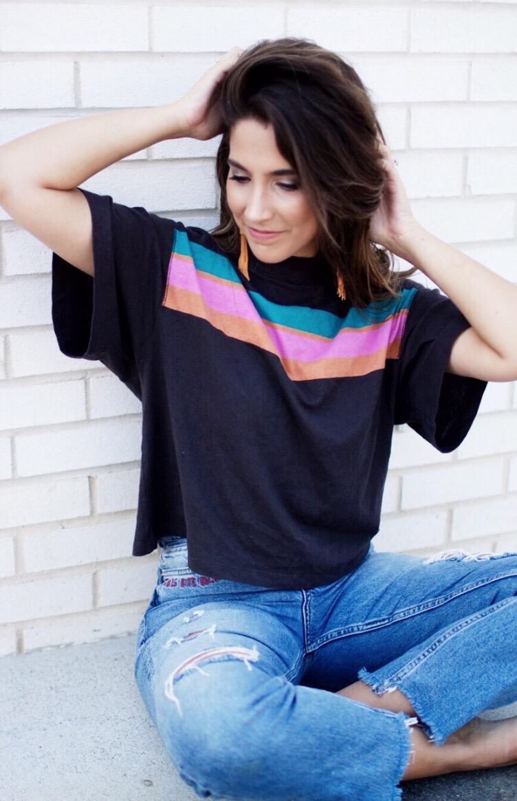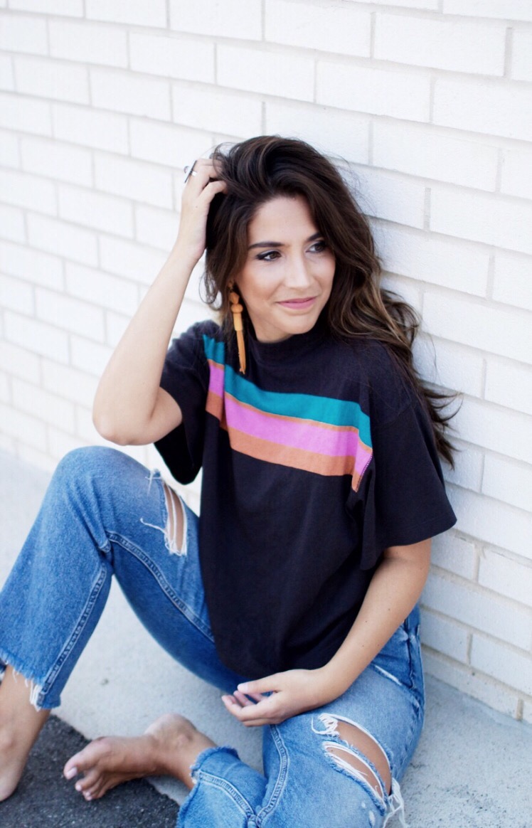 You guys I have to share with y’all my favorite tee ever !!! This Retro-inspired tee is currently from Free People and it’s actually very affordable. I paired it with some fun earrings, but I can not find the direct link to it. So below will be the direct link to this top and some similar options for the earrings! So don’t forget to check out the pictures below and the links will be provided at the end of the page!